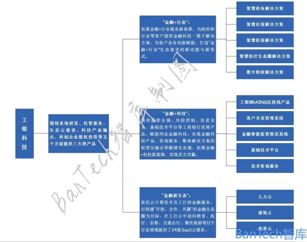 围绕上述五个方面,工银科技的产品主要包括“金融+行业”“金融+科技”“金融新生态”三大类。