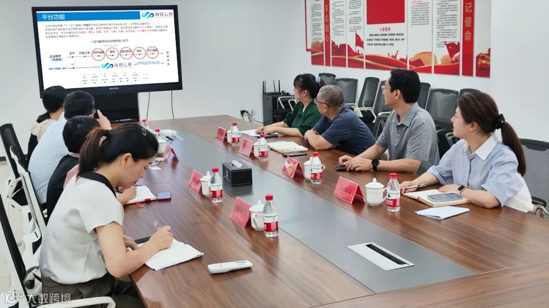 吴昌云向各位领导介绍了海投云贸的近期发展情况、服务功能升级及未来规划等情况。海投云贸秉承践行数字经济发展理念,以供应链管理为核心,降低企业贸易风险,帮助企业降本增效,助力企业贸易便利化,开拓更多海外市场。