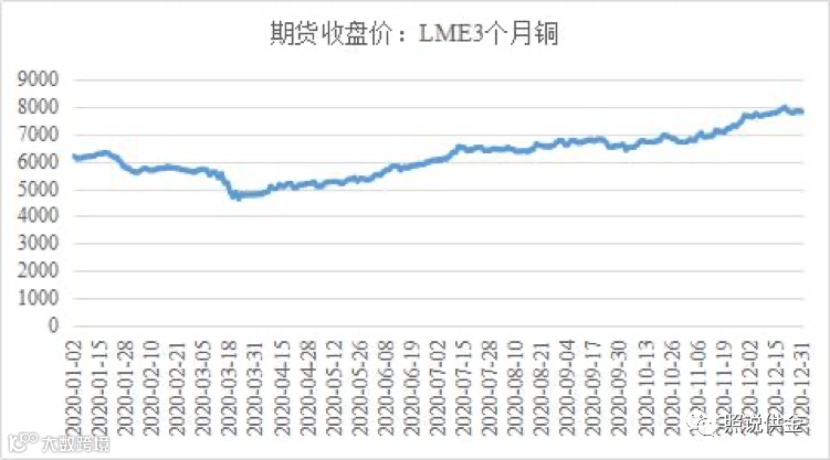 从价格情况来看,2020年LME三个月期铜价年均为6186.87美元/吨,同比上升2.83%。受新冠疫情的影响,物流和供应链受阻,全球经济不确定性增加,2020年第一季度,铜价大幅下跌。