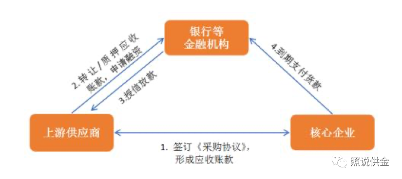 应收账款融资。铜行业核心企业与上游供应商之间签订《采购协议》,进而形成了应收账款。上游供应商将应收账款债权转让或质押给银行申请融资,银行和供应商通知核心企业并得到确认后,银行向供应商授信放款,核心企业根据约定到期支付货款。