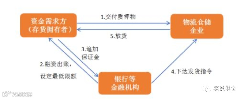 “先款/票后货授信”为铜供应链金融模式中的典型业务:采购方(经销商)向银行等金融机构缴纳一定比例的保证金后,银行基于供应商(通常为核心企业)的附加回购承诺向供应商支付全额预付货款或票据,供应商按照采购合同中约定条款发货至银行指定的第三方物流仓储企业,货物到达后设定抵质押作为银行授信担保,采购方按照约定将销售款项存入银行后,银行向物流仓储企业根据银行指令向采购方发出相应金额的货物。