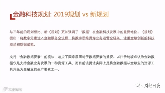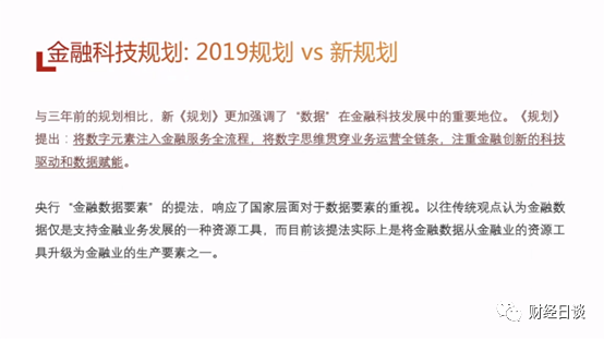 王勇认为,相对于2019年的规划,新《规划》更加强调了“数据”在金融科技发展中的重要地位,提出“将数字元素注入金融服务全流程,将数字思维贯穿业务运营全链条,注重金融创新的科技驱动和数据赋能”。
