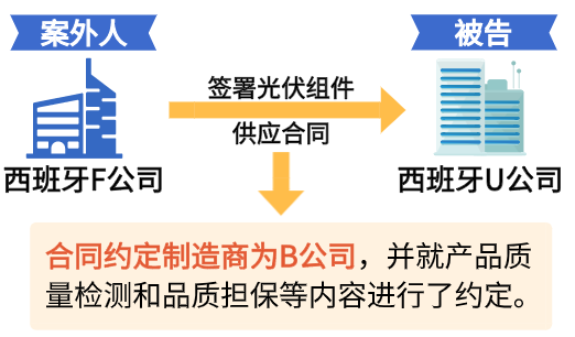 案外人F公司与被告U公司签署了光伏组件供应合同,合同约定制造商为B公司,并就产品质量检测和品质担保等内容进行了约定。