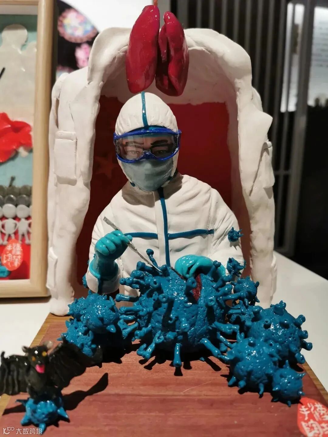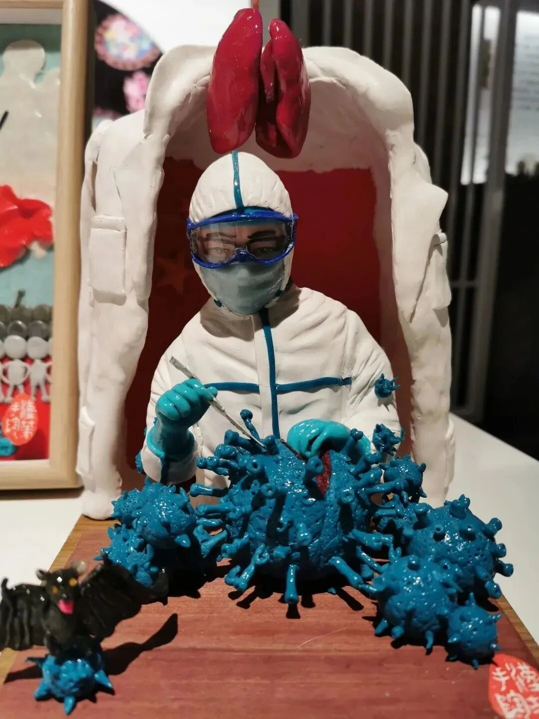 江干区文化遗产保护中心的非遗大师们发挥各自专业优势,创作剪纸、蛋雕、捏塑、微木制等作品,用手艺的形式记录感人事迹、宣传防疫知识、提振社会信心,为增强群众防疫意识、鼓舞一线工作士气、打赢疫情防控战役注入自己的艺术正能量。