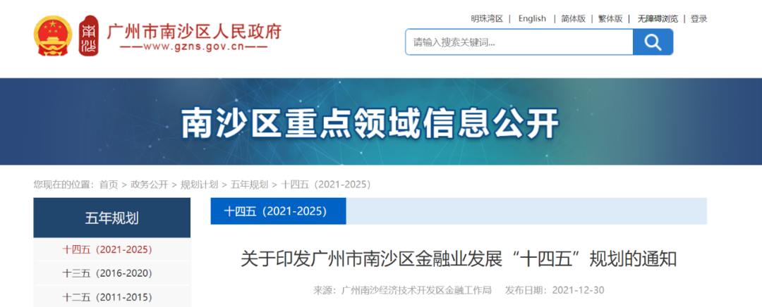 近日,广州南沙开发区管委会发布了《广州市南沙区金融业发展“十四五”规划》(以下简称“规划”)。《规划》提出探索打造“一中心两功能区”特色金融功能承载区,建设南沙供应链金融示范区。