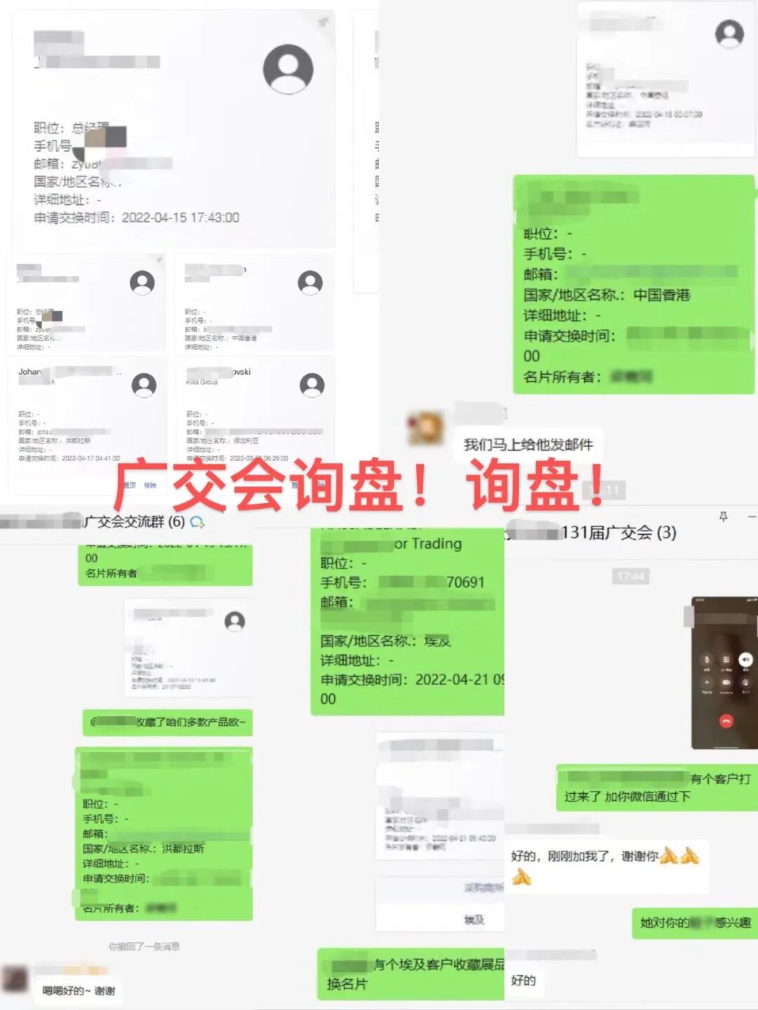 此外,在供采对接方面,更是充分利用广交会平台的供采对接新功能,实时跟进采购商信息,快速精准定位,发起即时沟通互动,提高对接效率,并针对产品品类,分派专门人员及时跟进并反馈!