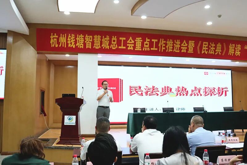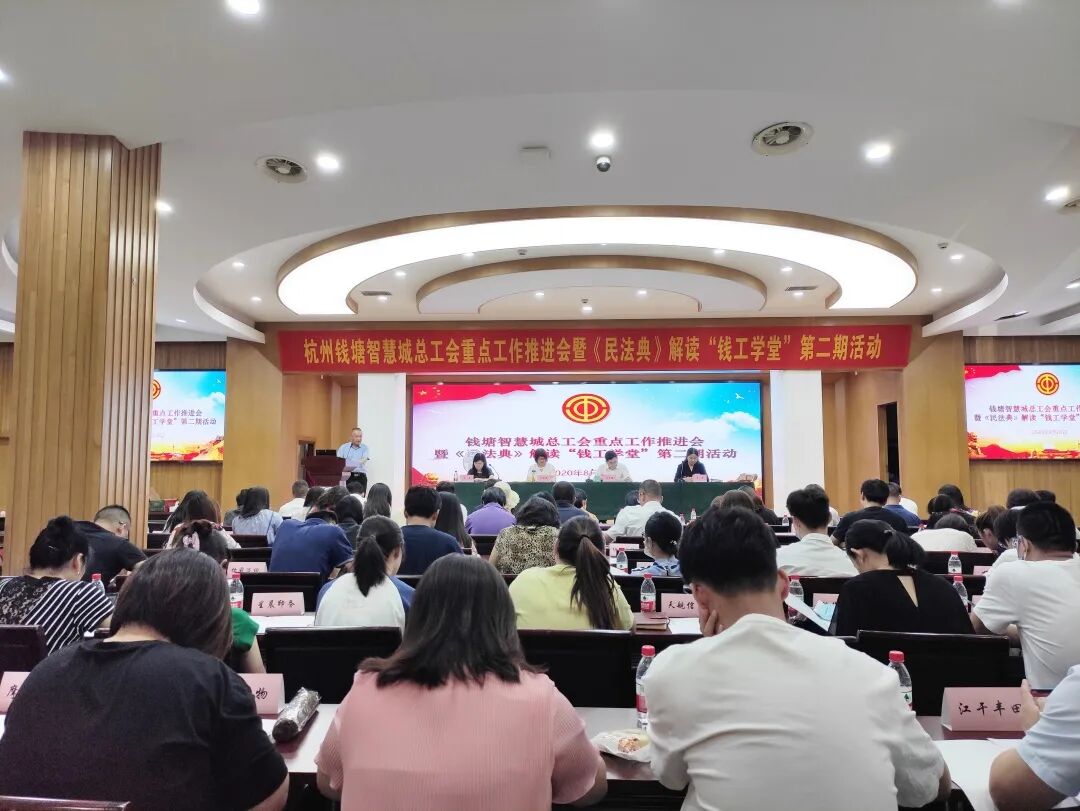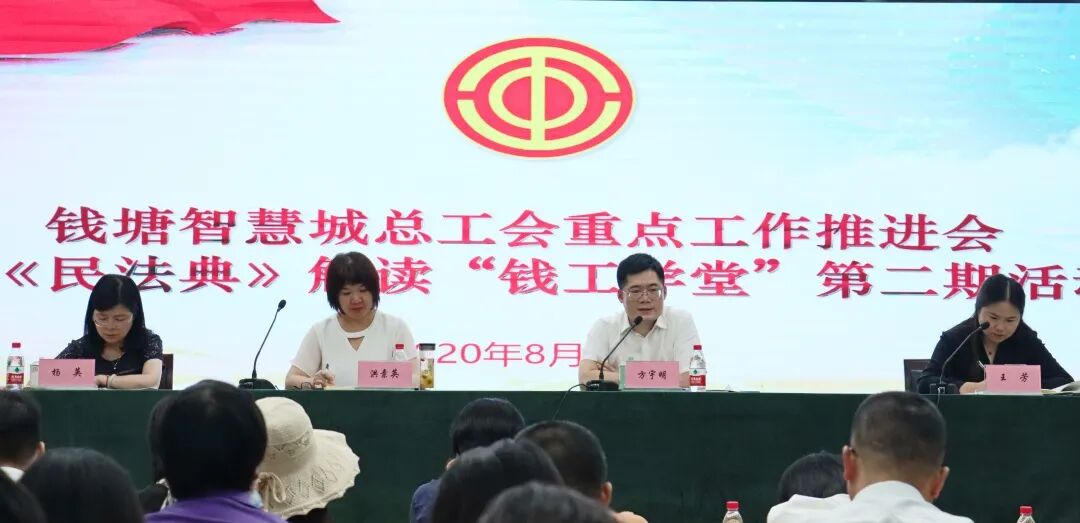 为学习贯彻区总工会八届六次全体(扩大)会议精神,回顾总结钱塘智慧城总工会2020上半年亮点工作,相互交流学习先进经验做法,科学高效地推进下半年工会工作任务,8月20日上午,钱塘智慧城总工会举行重点工作推进会暨《民法典》解读“钱工学堂”第二期活动。
