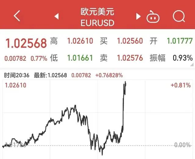 汇率方面,受此消息提振,走势疲弱的欧元汇率盘中突现跳涨,对美元日内涨幅一度超过1%。