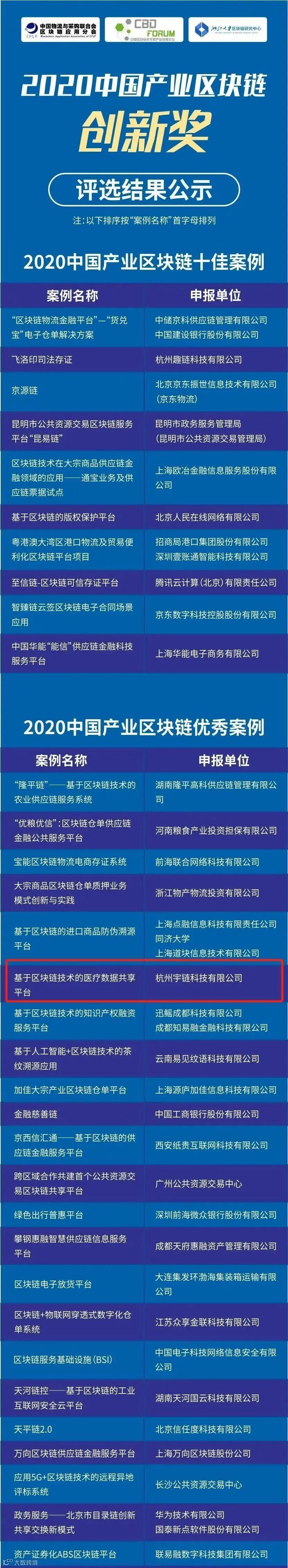 在此次产业区块链创新评选活动中,智慧城企业宇链科技的基于区块链技术的医疗数据共享平台得到参赛评委的一致好评,被评为2020中国产业区块链优秀项目。