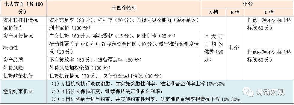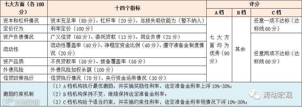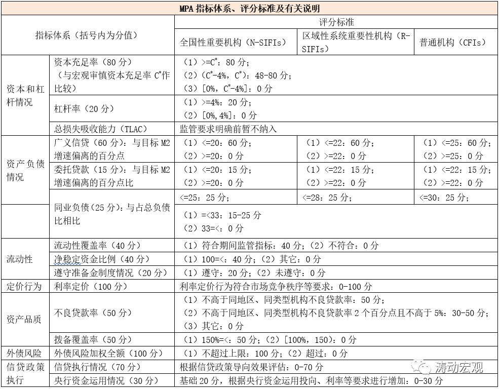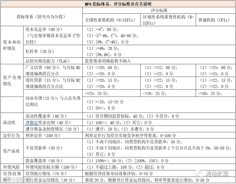(二)MPA评估的指包括资本和杠杆情况、资产负债情况、流动性、定价行为、资产质量、跨境融资风险、信贷政策执行等七大方面约14个指标。根据宏观调控需要,人民银行可对指标构成、权重和相关参数、评分方法等进行调整。 实际上近年来,MPA体系的内涵在不断丰富,覆盖范围和适用对象持续扩大。