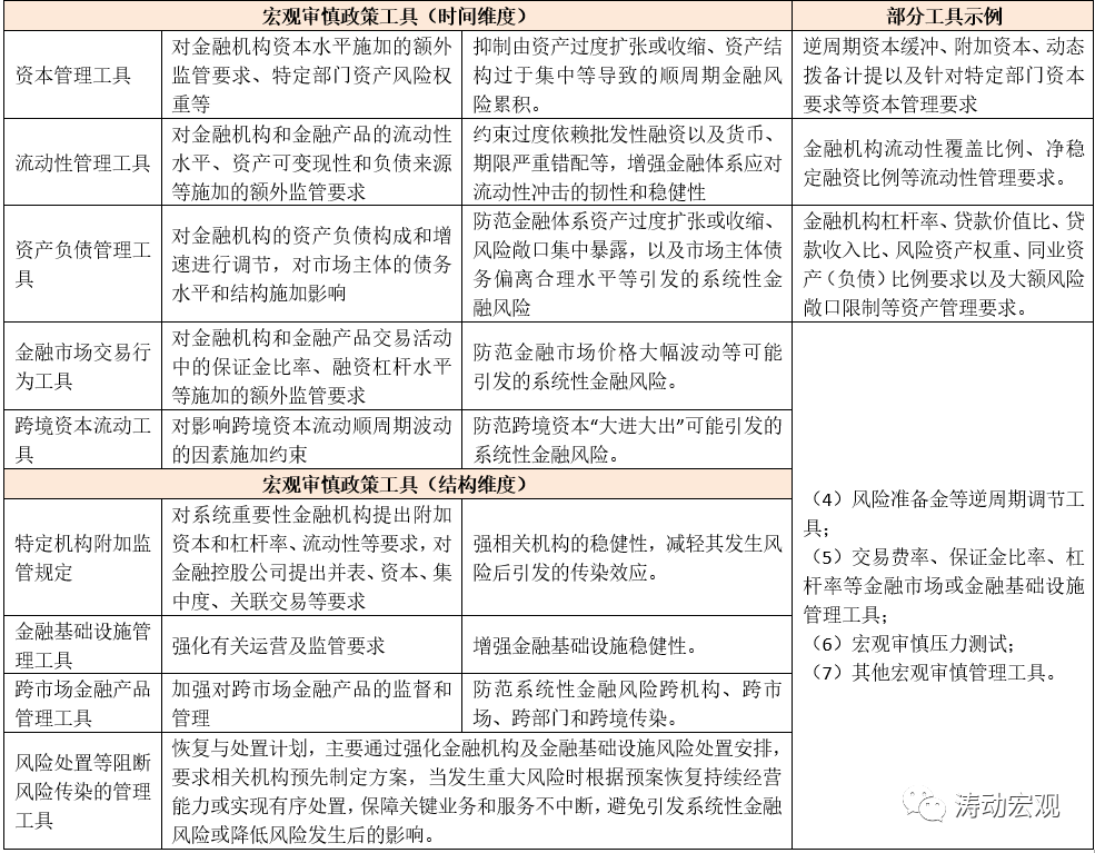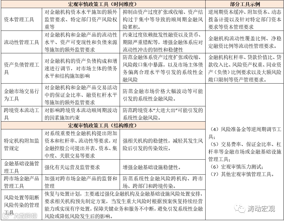 时间维度的工具主要包括资本管理工具、流动性管理工具、资产负债管理工具、金融市场交易行为工具以及跨境资本流动管理工具。
