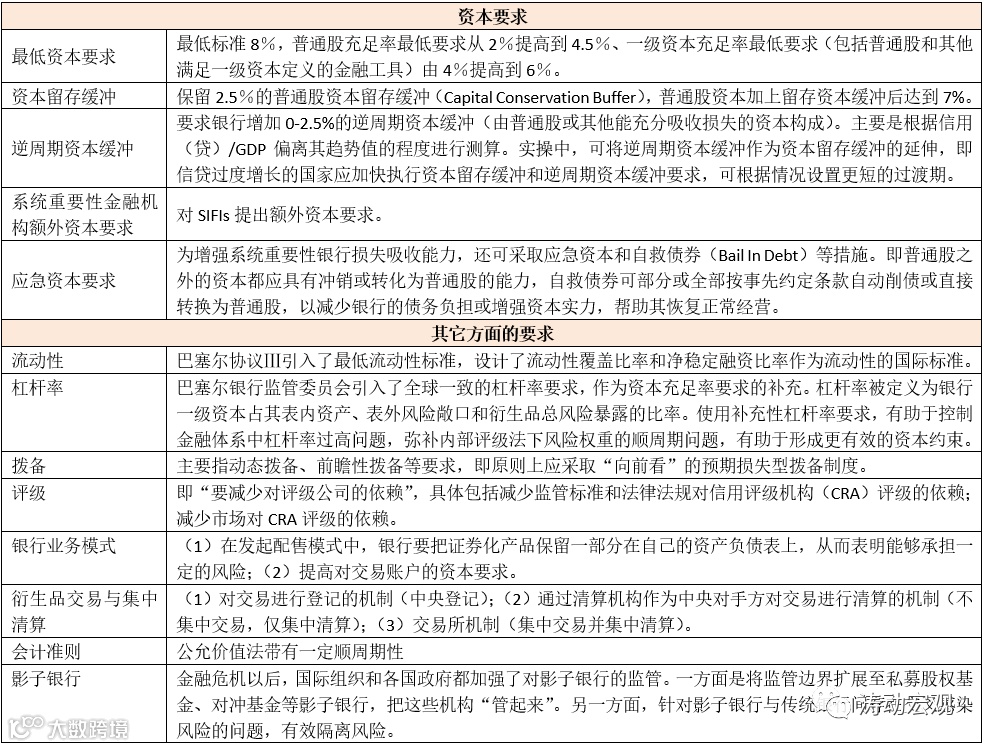 3、G20批准的巴塞尔协议III新资本要求将提高资本质量作为重点,并明确分为五个层次,即最低资本要求、资本留存缓冲、逆周期资本缓冲、系统重要性金融机构额外资本要求以及应急资本机制。当然,除资本要求外,国际上的宏观审慎政策框架还包括流动性、杠杆率等方面的内容。