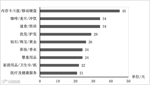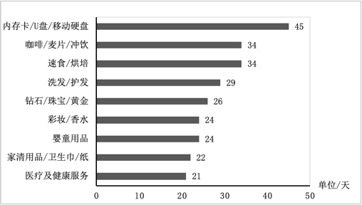 平台上新品孵化周期短。根据CBNData线上调研数据显示,新品孵化周期提速时间占比中,提速1-3个月、20天和4—18个月比例分别居前三位;不同行业头部新品的产品孵化周期缩短21—45天不等,高潜新品缩短9-18天不等(图5,图6)。