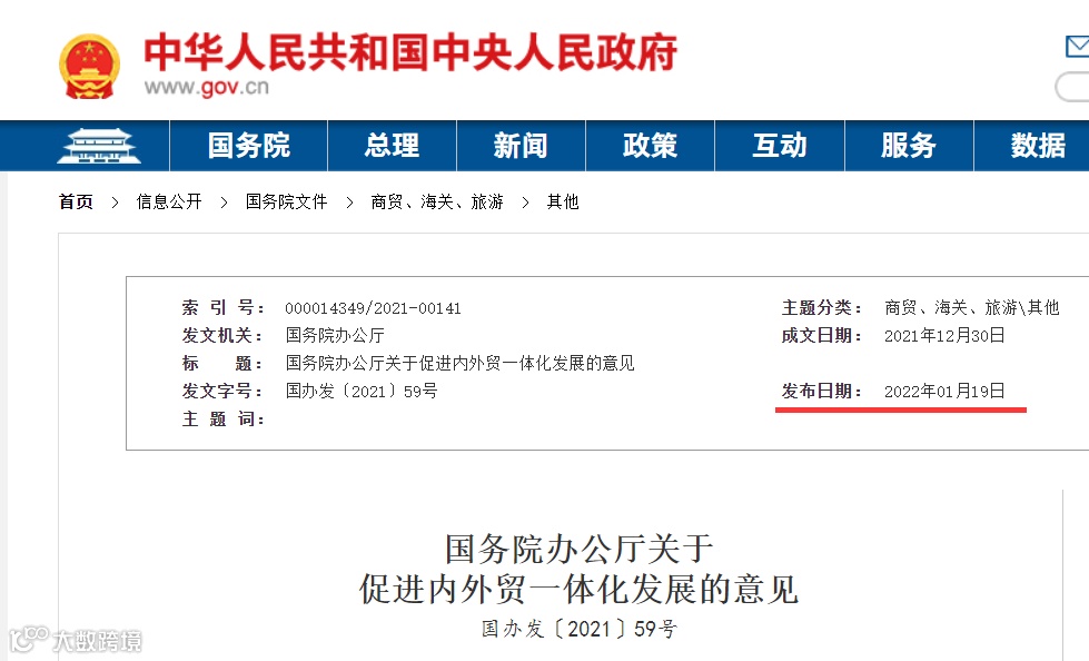 国务院办公厅关于促进内外贸一体化发展的意见