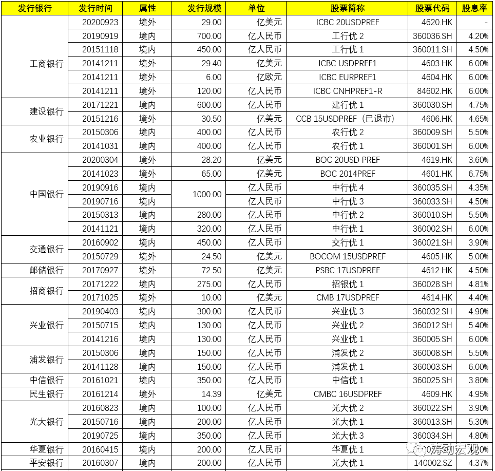 (三)优先股:29家银行合计发行52只优先股,规模合计超1万亿