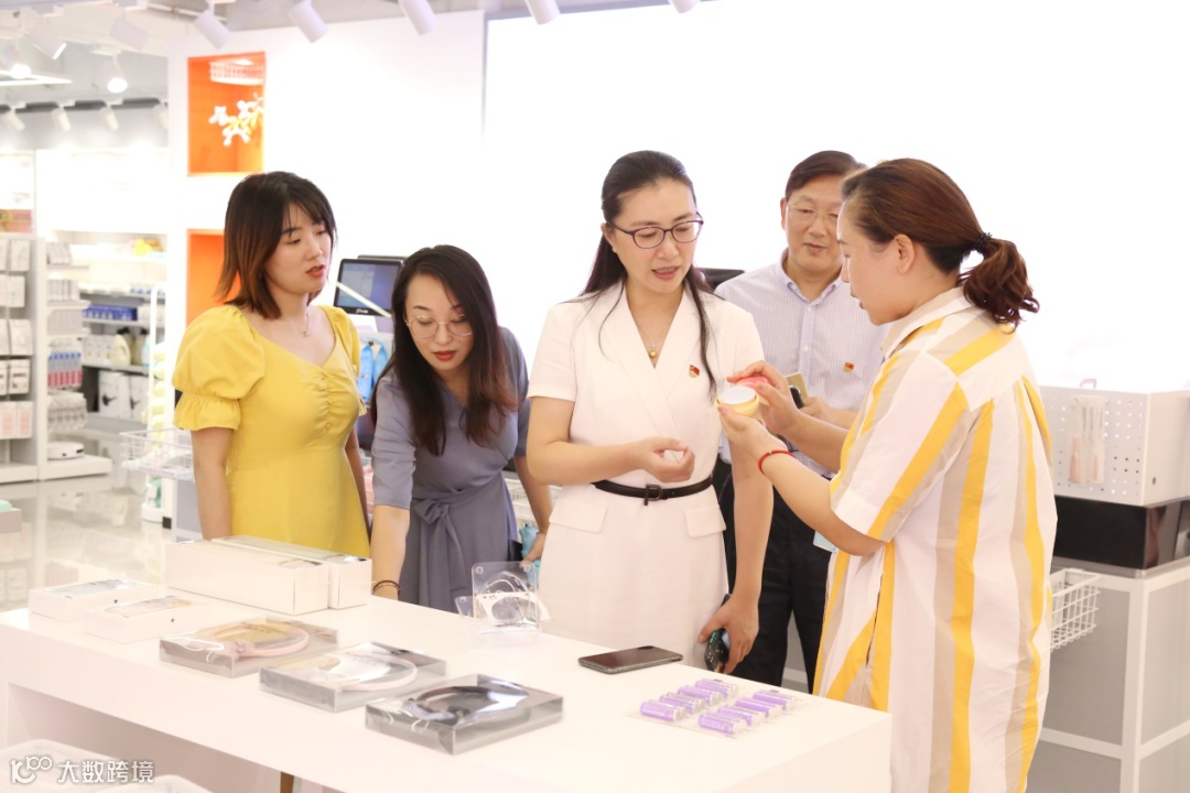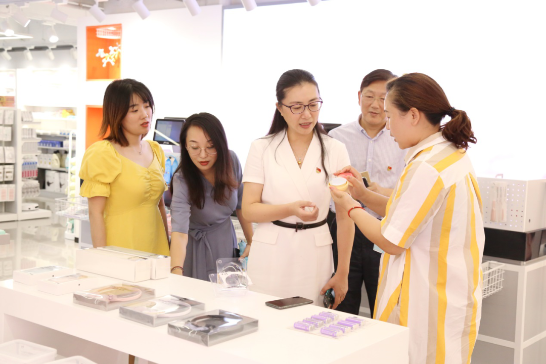 俞主任一行先行参观了华侨国际平台内的优质企业——浙江金泰凯供应链有限公司,与企业负责人亲切交谈,听取公司主营业务与发展情况的介绍,重点了解直播带货的经营模式与经营特点等。