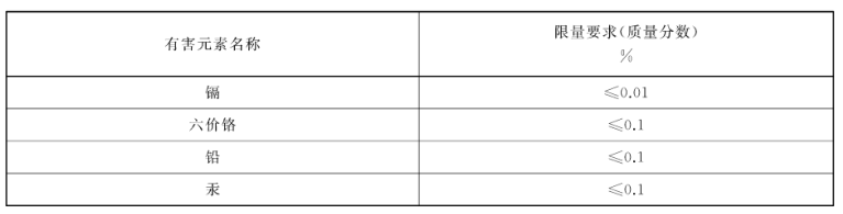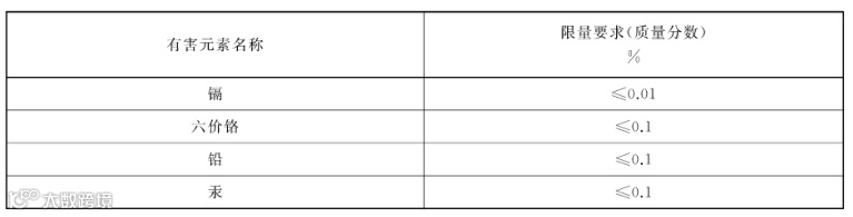 3.2 刹车片中其他有害元素不得超过下表规定的限量要求。