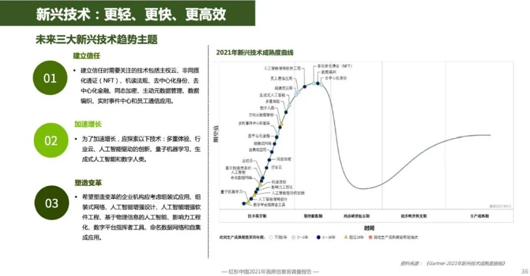 企业引入技术的最终目的还是为了服务于业务,所以技术需要在业务场景中体现其具体价值。因此,企业在拥抱新兴技术时应当综合考虑技术与业务的适配性、技术的前瞻性和成熟度,以及自身的研发与应用能力,不必过分追求高端、全新的技术,而应选择最适合自己的。