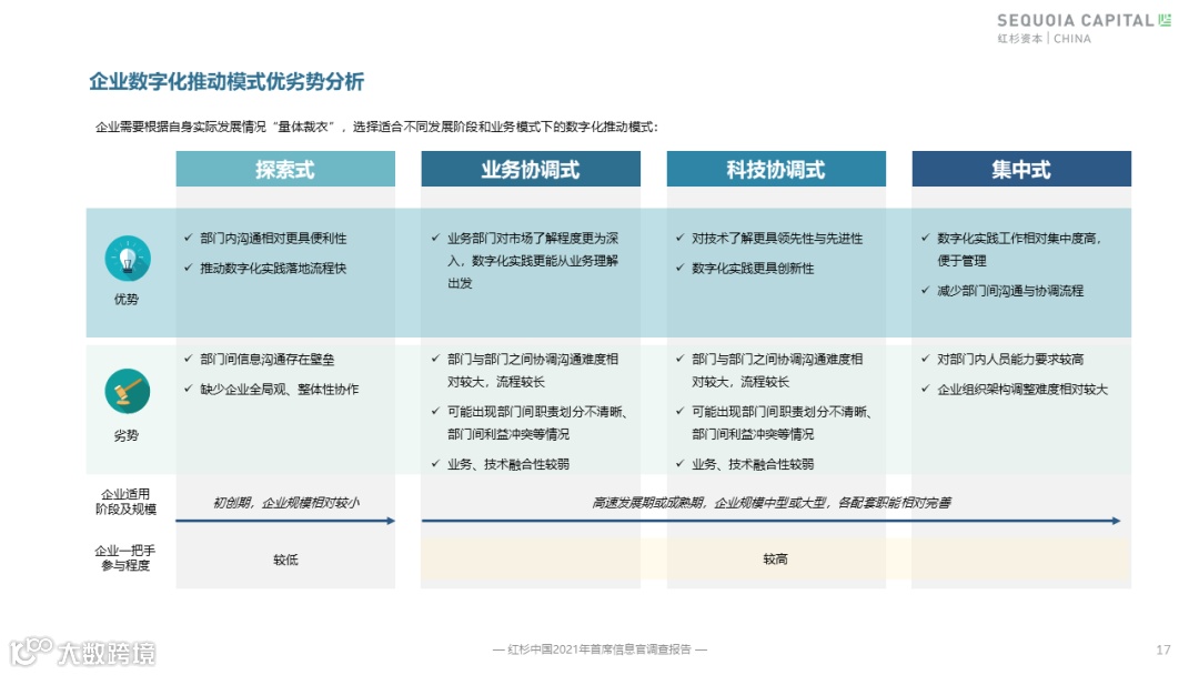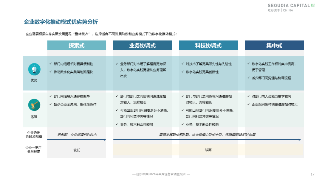 企业需要根据自身实际发展情况“量体裁衣”,选择适合不同发展阶段和业务模式下的数字化推动模式。