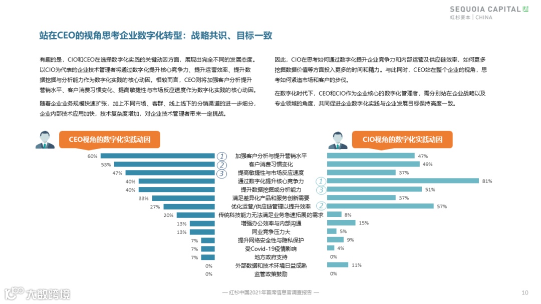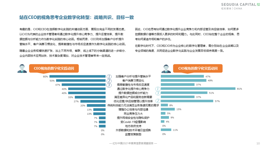 CEO和CIO作为企业核心的数字化管理者,需分别站在企业战略以及专业领域的角度,共同促进企业数字化实践与企业发展目标保持高度一致。