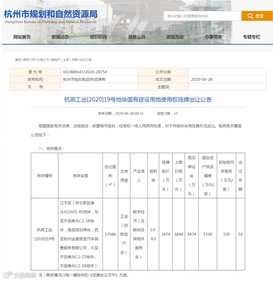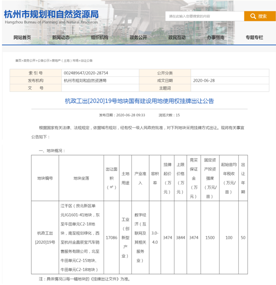 今年杭州首宗以“控地价、竞贡献”方式出让的创新型产业用地,今日挂牌!