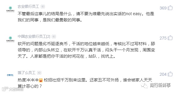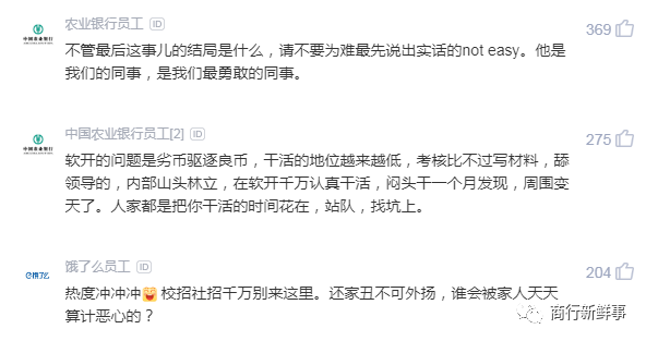 一个好的团队,都会有不同的声音,员工提出问题,领导给出解释,这才是一个好的团队。员工如果在私下提出意见,领导及时解决,我相信这么大规模的吐槽事件也不会发生的,现在闹到上热搜,可想而知农行软开的员工们积压了太久。