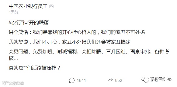 农行员工集体吐槽:免费加班变相降薪,研发部门身心俱疲!