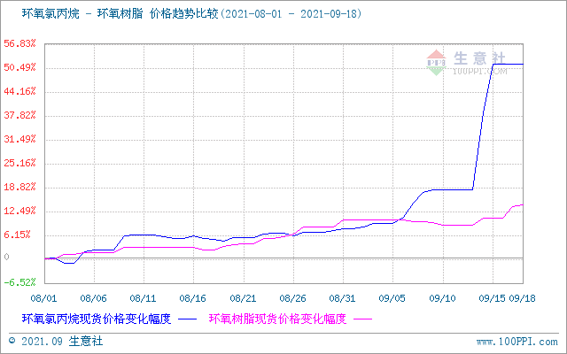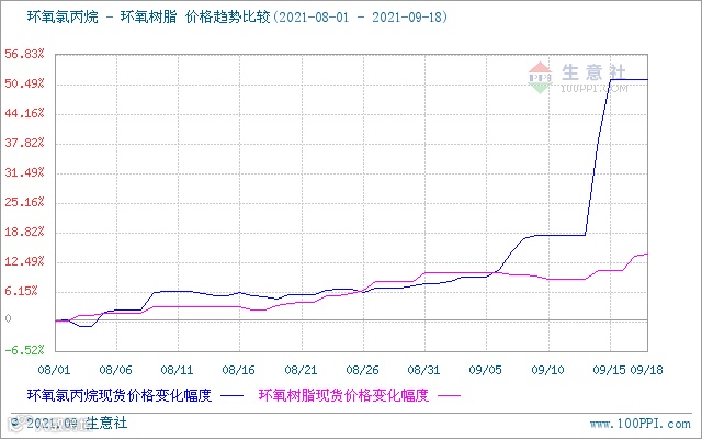 环氧氯丙烷9月18日市场报价20400元/吨,较月初上涨了5700元/吨。目前下游以按需采购为主,预计短期内环氧氯丙烷仍有上涨空间,短期报价或在20500-21000元/吨。