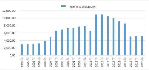 图1-2 我国1999年-2020年钢铁行业企业单位数