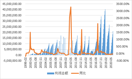 图1-1 我国1999年-2020年钢铁行业利润总额及同比增长率