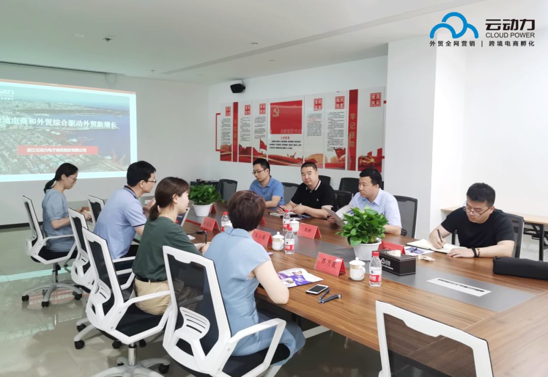 在随后召开的会议上,吴总向各位领导介绍了城发云贸发展的基本情况,介绍了城发云贸的定位是是台州市椒江区首个国资控股的外贸综合服务平台,也是台州首个外贸+跨境电商为一体的综合运营服务平台,而我们的愿景是成为全国领先的外贸+跨境电商综合服务企业,并报告了未来的发展规划。