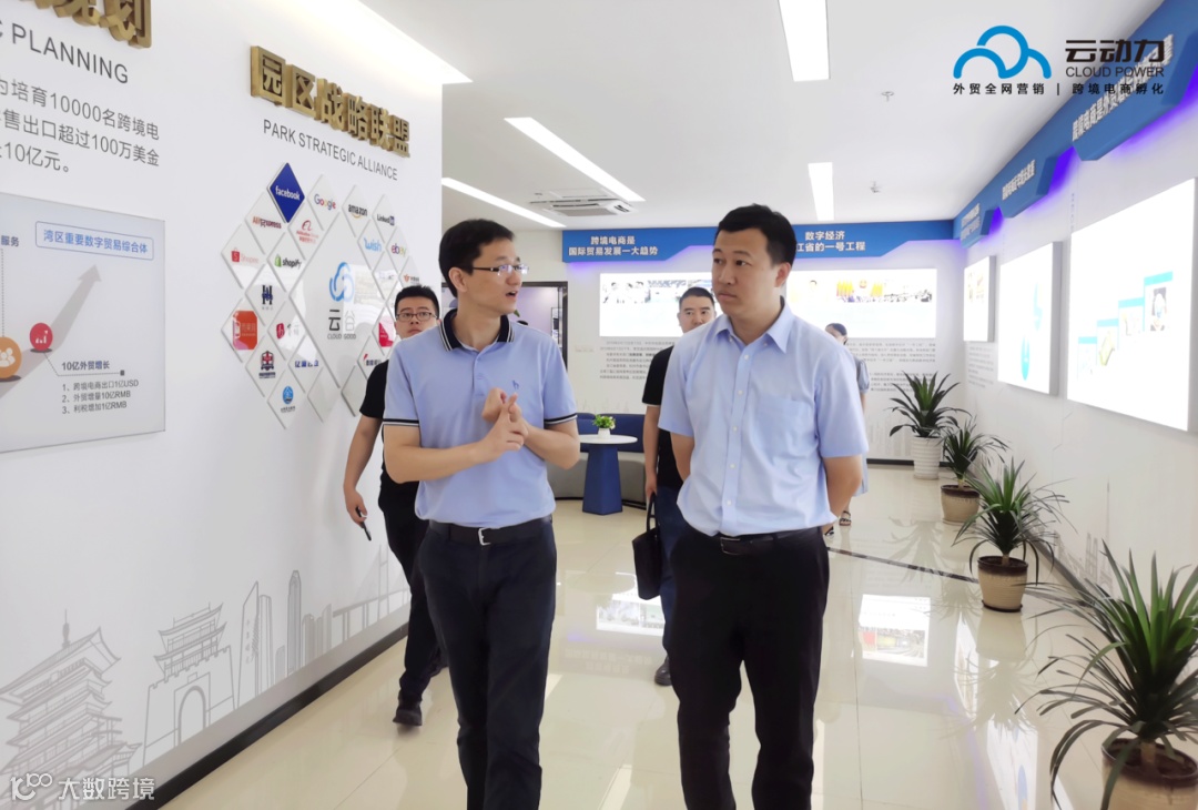 总经理吴昌云首先对椒江区副区长陈彬,区商务局副局长唐伟军一行的到访表示热烈欢迎,并陪同参观了跨境产品展厅、跨境文化长廊、共享办公区等场所。