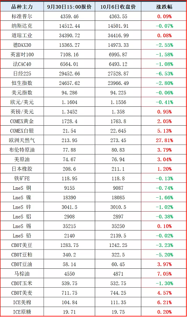 一图看懂国庆假期大类资产整体走势:主要股指普跌,原油上涨,黄金上涨,长端国债收益率上涨