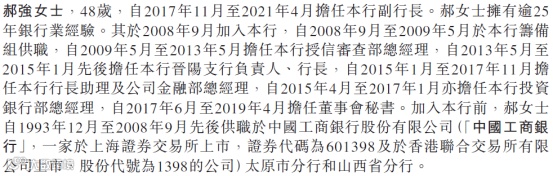 履历显示,郝强出生于1972年11月,至今已有近28年的银行业从业经验。在1993年12月至2008年9月的近15年时间里,郝强先后供职于工商银行太原市分行和山西省分行。历经“宇宙行”的历练后,郝强于2008年9月加入筹备中的晋商银行,开启了另一段银行业从业生涯。