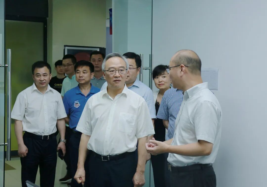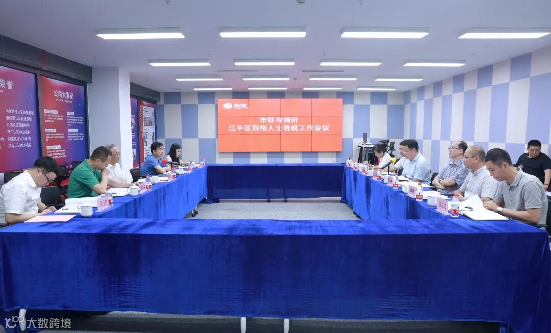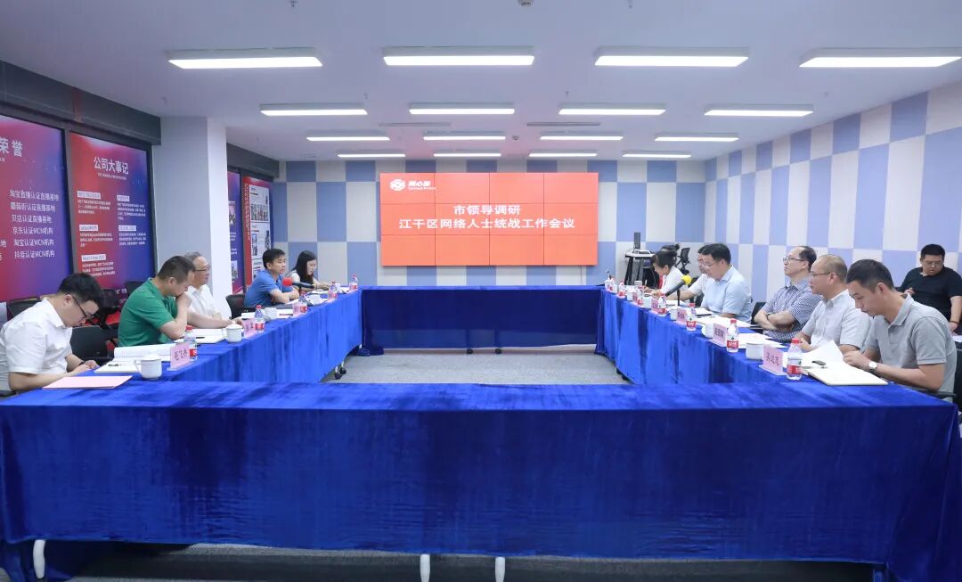 调研中,陈新华一行走访参观了智慧城重点电商企业——贝贝集团、直播平台营运商企业——斜杠广场,听取了企业发展及同心荟平台建设等情况介绍。在随后座谈会上,陈新华详细了解了当前网络人士统战工作开展情况,以及下一步工作计划。