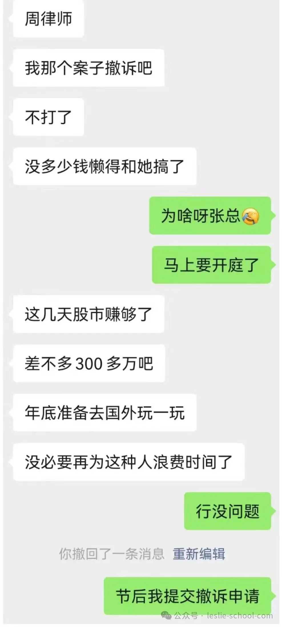 你看上面这个,钱来了,自己气儿就顺了,都不用纠纷解决手段解决问题了。