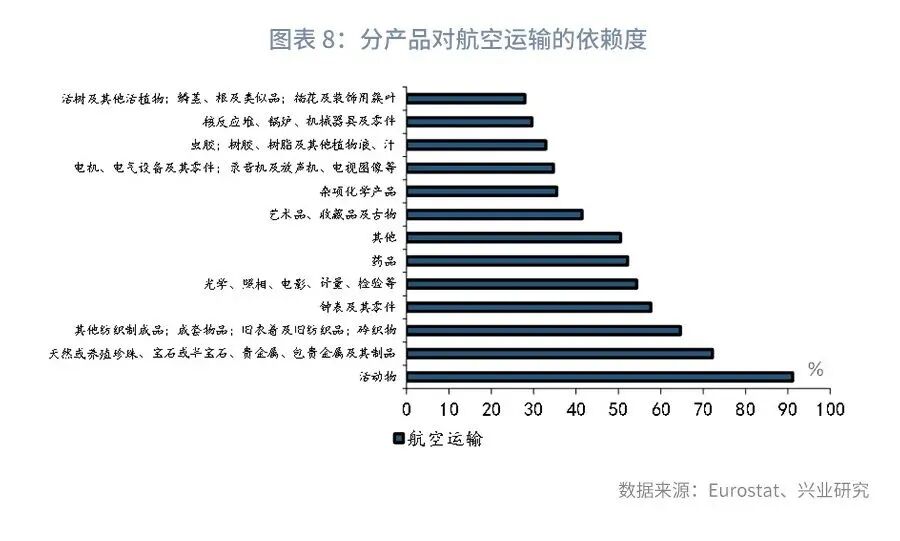 相对而言,高度依赖于航空运输的产品出口受运输成本上升的扰动较小。具体而言:
