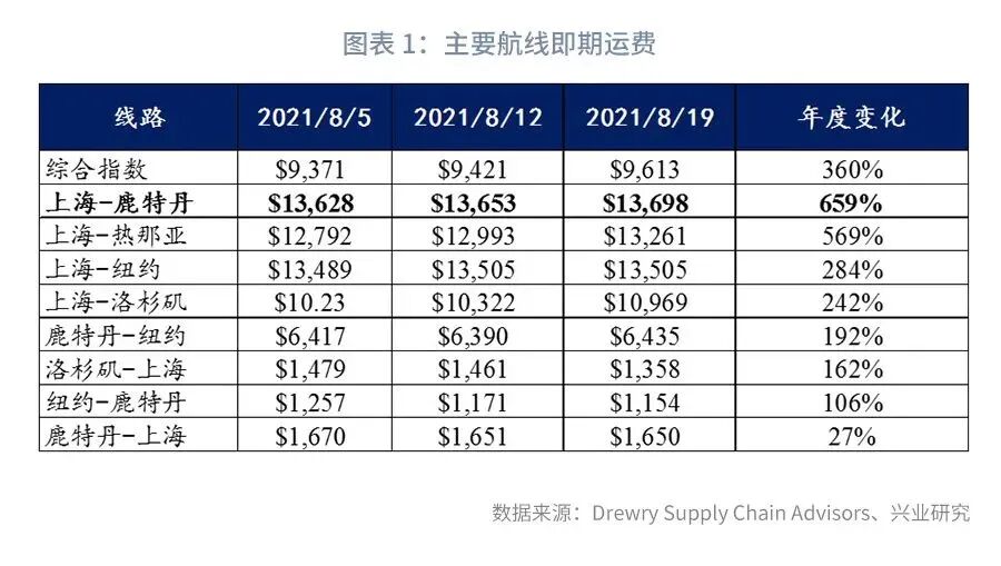 在运费飙升而运费相对货物出口总值相对稳定的背后,可能不同行业承受的运费上涨压力并不均衡。那么,运费上涨的冷热分布如何?