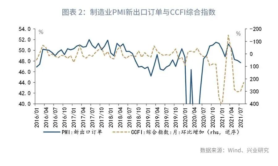 疫情爆发以来,供应链中断叠加全球需求不均衡分布,全球海运运费普遍上涨,由中国出发的航线涨幅位居前列。以上海至鹿特丹航线为例,截至2021年8月19日,该航线运价高达13698美元,为去年同期的6.6倍,参见图表1。运费上涨带来出口企业利润空间收窄,企业接单意愿下行进而导致新出口订单持续下行,参见图表2。那么,出口企业运输成本有多重?