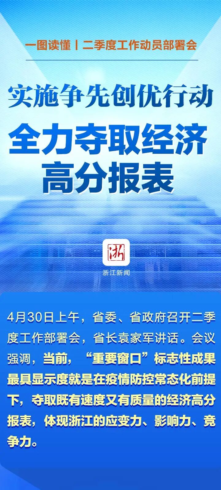 一图读懂丨浙江省二季度工作动员部署会:实施争先创优行动 全力夺取经济高分报表