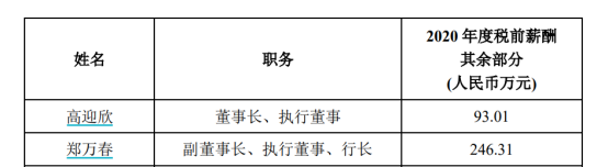 8月6日消息,民生银行公布《关于 2020 年度公司高管薪酬的补充公告》。据披露,民生银行董事长、执行董事高迎欣2020年度税前薪酬其余部分为93.01万元,副董事长、执行董事、行长郑万春为246.31万元。