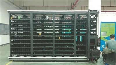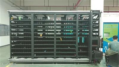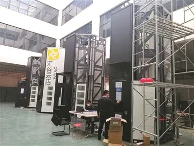5米高,仓售一体,这个相当于升级加大版自动贩售机的立体空间里可以存储600-800件货物,而且空间可灵活调整。消费者点击电子屏,选择心仪物品下单后,机子内部的机械臂会将对应储藏空间里的货物放至出货口,自动送到消费者面前。