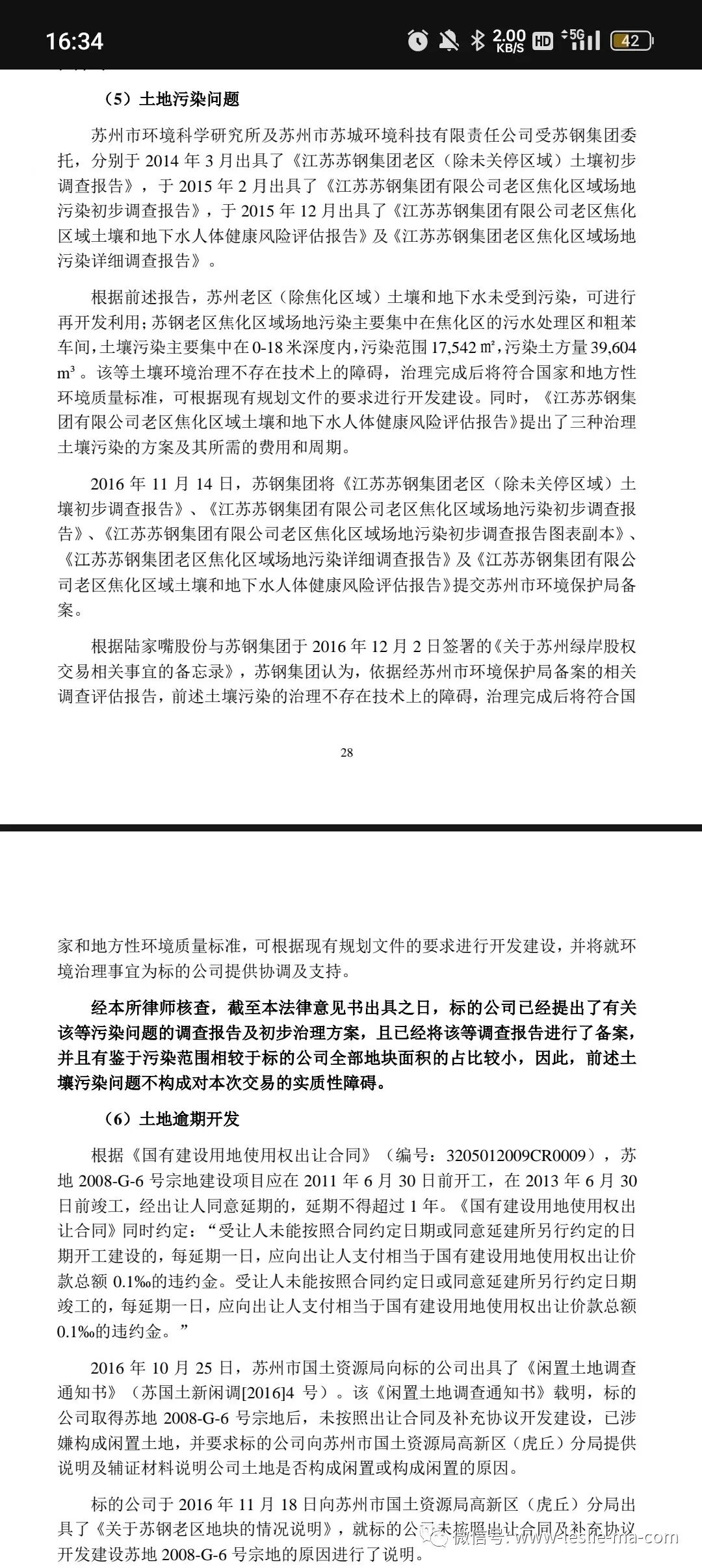 然后就有人甩出来当时的锦天城当时为陆家嘴做的重大资产购买法律意见书,里面有对土地污染问题所做的风险分析,提到:土壤污染问题不构成对本次交易的实质性障碍。