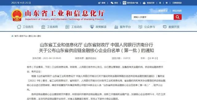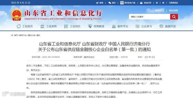 山东省工业和信息化厅二级巡视员张登方提出,山东省已优选公布了“第一批省供应链核心企业白名单”594家,下一步将紧紧围绕全省重点产业链,进一步优选和凝炼核心企业名单,组织上下游中小企业积极参加供应链工作,用金融活水浇灌产业发展沃土,打造优良业态。
