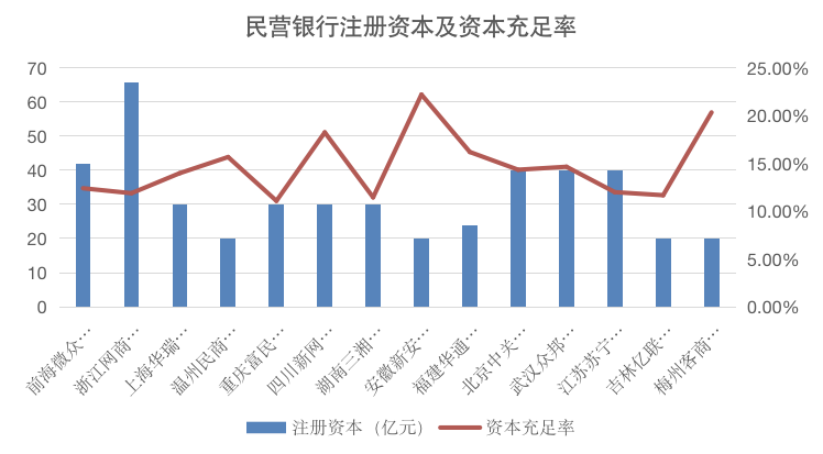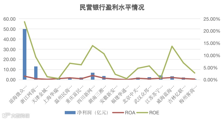 截至2020年末,民营银行注册资本在40亿元以上的机构有5家,分别是浙江网商银行、前海微众银行、武汉众邦银行、江苏苏宁银行、北京中关村银行,其他机构注册资本在20亿元-30亿元之间,全部机构平均资本充足率在14.50%左右,虽高于监管标准和城商行平均水平,但低于国有大行平均水平2个百分点,再考虑到民营银行高速扩张对资本的加速消耗,资本补充迫在眉睫。与此不相称的是,民营银行资本补充渠道十分有限,从内源性补充渠道看,盈利水平显然不能持续支撑业务高速发展,目前仅有前海微众银行、四川新网银行ROA和ROE达到监管标准,其他机构要么放缓增速、要么提高盈利能力、要么调整资产结构;从外源性补充渠道看,上市时间长、发债难度大,目前也只有浙江网商银行成功发行永续债。