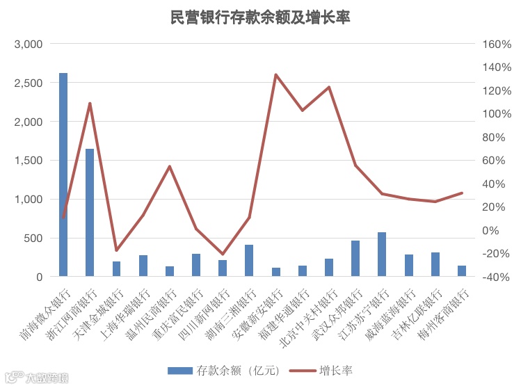 2.存贷主业快速发展。截至2020年末,16家民营银行存款余额8065亿元,较上年末增加1865亿元,增幅达到30%,是全国银行业平均存款增幅的3倍。其中安徽新安银行、北京中关村银行、浙江网商银行、福建华通银行增幅过1倍,分别达到133%、123%、109%和103%;武汉众邦银行、温州民商银行存款增幅超过50%,分别达到55%、54%。低于全国银行业平均存款增幅的民营银行仅有3家,分别是重庆富民银行、天津金城银行和四川新网银行,增幅分别为1%、-17%和-21%。需要指出的是,民营银行存款增长,是在监管部门严控智能存款情况下取得的,实属不易。