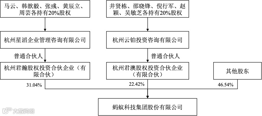 说明:杭州星滔及云铂投资作为杭州君瀚及杭州君澳的普通合伙人,不享有任何来源于蚂蚁集团的经济利益。