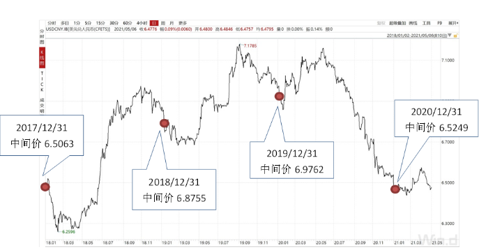 以2020年为例,上半年USD/CNY在7.0附近震荡,整体处于历史高位,人民币走强空间较大预期强烈,外币融资及代客衍生产品均可全面配置,且因代客衍生手续简便成本低可酌情放大比重;下半年USD/CNY快速跌破6.8,并一路凿穿6.5,考虑到USD/CNY进一步下跌空间有限、反弹风险加大,反向操作成本更低的外币融资比重应酌情加大。当然,不同企业基于自身现金流及银行贷款结构考虑,也可对外币融资比重进一步调整。