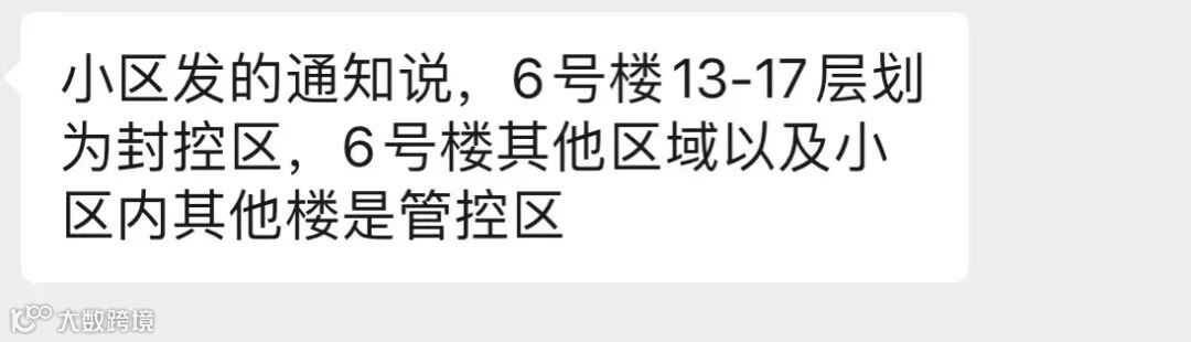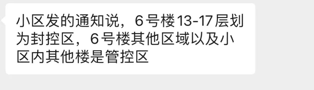 看了这个,感觉这个同事小区采取的管控措施,精准到家了,同一个楼里都能分楼层管理了,有封控区,有管控区。