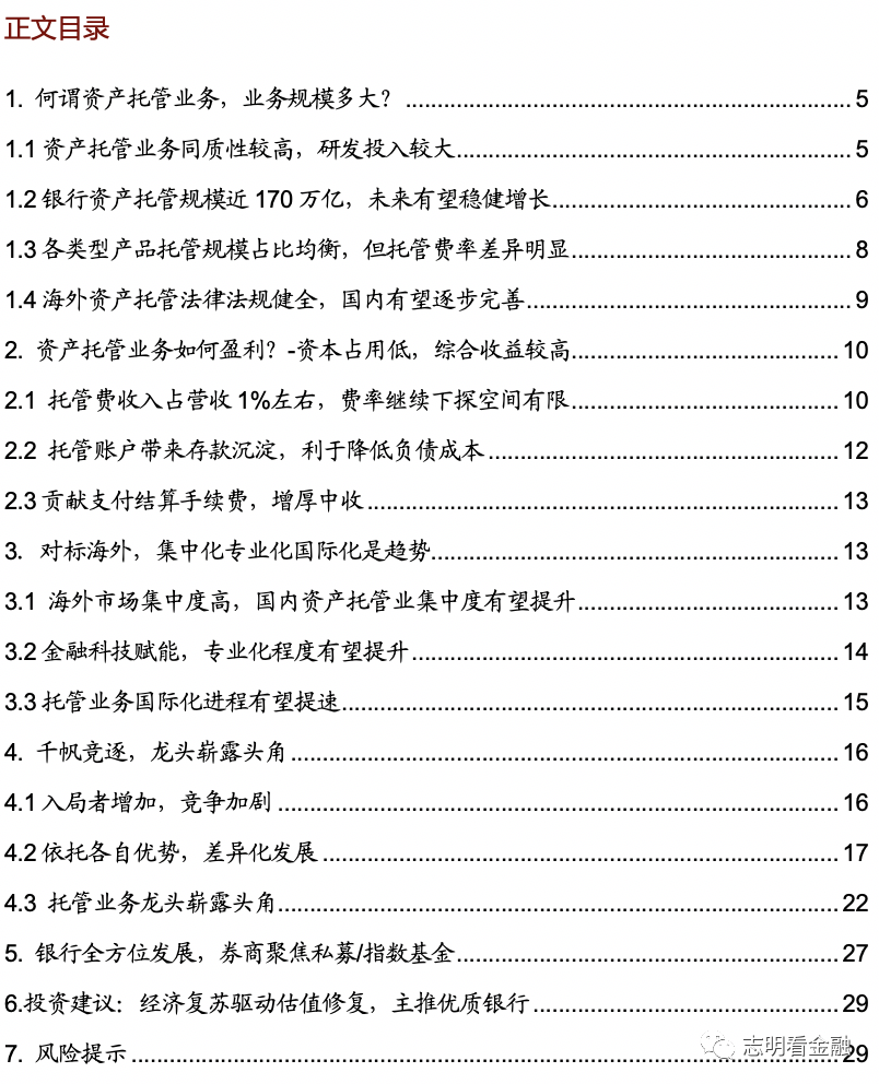 风险提示:托管费率继续下降风险;经济失速,资产质量恶化等。
